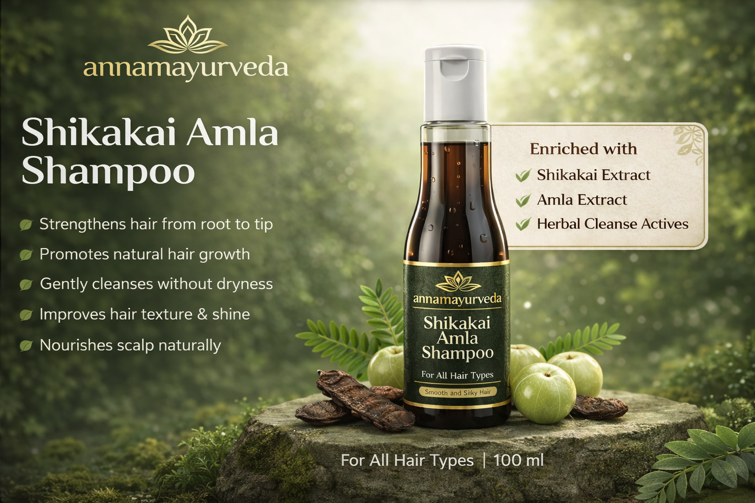 Shikakai Amla Shampoo is a powerful Ayurvedic blend designed to strengthen hair from root to tip while maintaining scalp health. Infused with Shikakai and Amla extracts, this shampoo deeply cleanses the scalp without causing dryness, making it perfect for regular use.